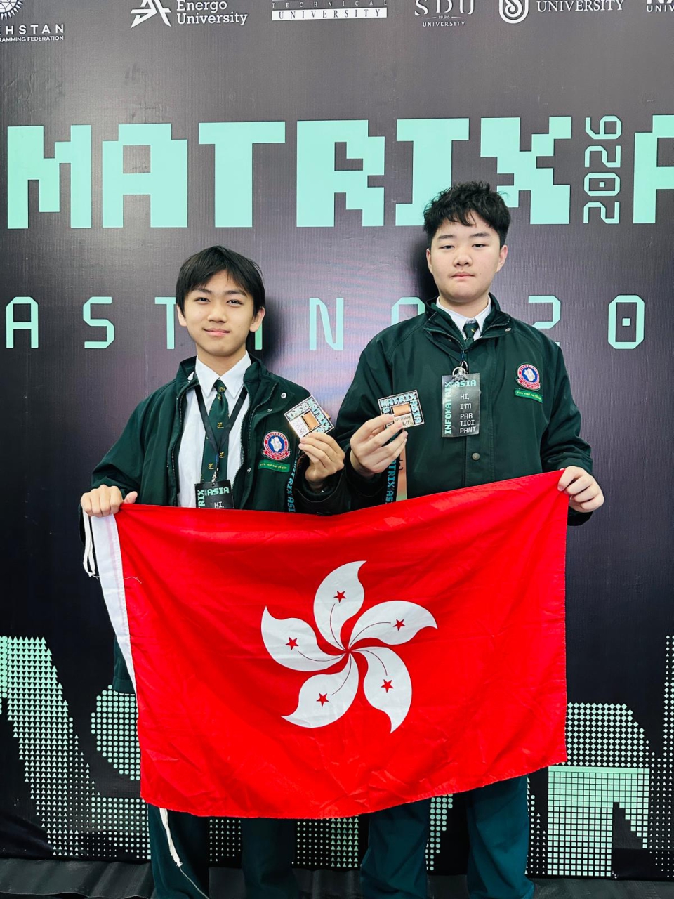本校3D動畫學會兩隊隊伍,共四名學生——中三級耿嘉偉、丁梓浵,以及中五級盧星宇、鄭啟光,在翁副校監全額贊助下,於2026年3月22日至28日遠赴哈薩克斯坦,代表中國香港出戰國際賽事「Infomatrix Asia 2026」。本屆賽事雲集近30個國家及地區,逾2500套作品入圍,5000名選手同場競技,如土庫曼、烏干達、阿塞拜疆、中國等均在列。最終,耿嘉偉與丁梓浵憑藉AI動畫作品《Warmth of Orange》,以及盧星宇與鄭啟光以AI動畫作品《Alien》,於「國際AI圖像及藝術組別」中脫穎而出,分別奪得一金一銀佳績。評審讚揚學生的作品動作細緻,能夠保持每一鏡頭的連貫性,展現專業水準,更指出此技術連當地大學生甚至教授也未能做到。其中,中五級鄭啟光同學更獲當地電視台採訪。