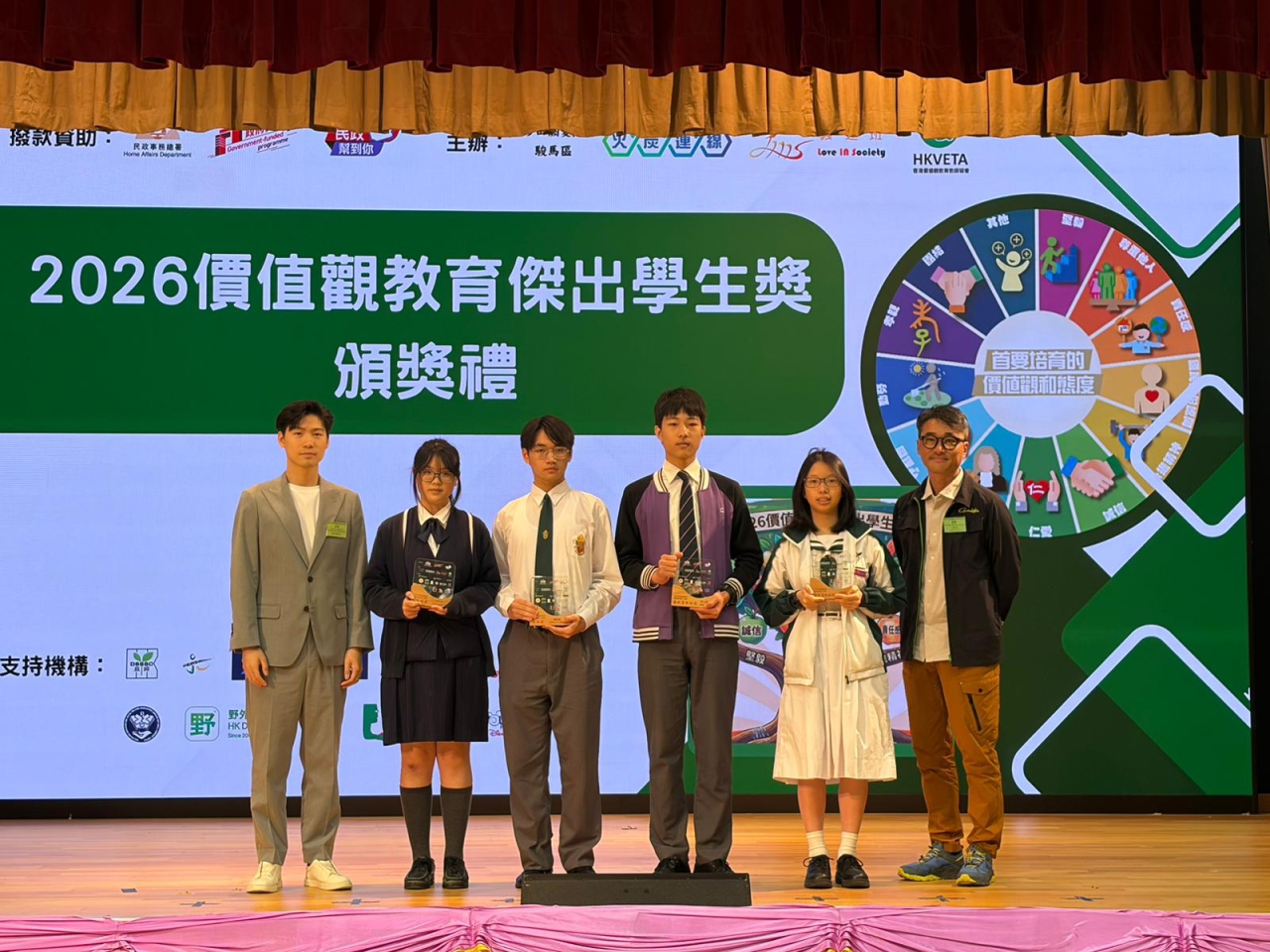 本校5A柳美瑾參與由「香港價值觀教育教師協會」主辦、民政事務總署協辦的2026年價值觀教育傑出學生選舉並獲選為傑出學生。為鼓勵學校積極推動價值觀教育,表揚在教育局十二項核心價值觀中表現傑出的學生,樹立傑出學生成為學習榜樣,主辦方邀請獲獎學生出席於3月21日舉行的頒獎典禮。