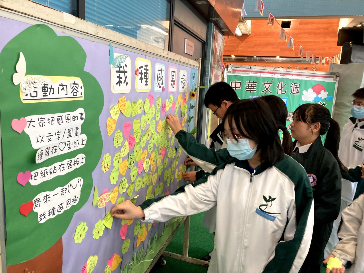 為配合本年度學校主題「感恩」、「同理」,本校輔導組在11月20日至24日舉辦了感恩週,希望讓學生反思生活,感念恩情,輔導組特舉辦一系列的活動,讓學生透過不同的形式建構正向的價值觀,實踐善行。